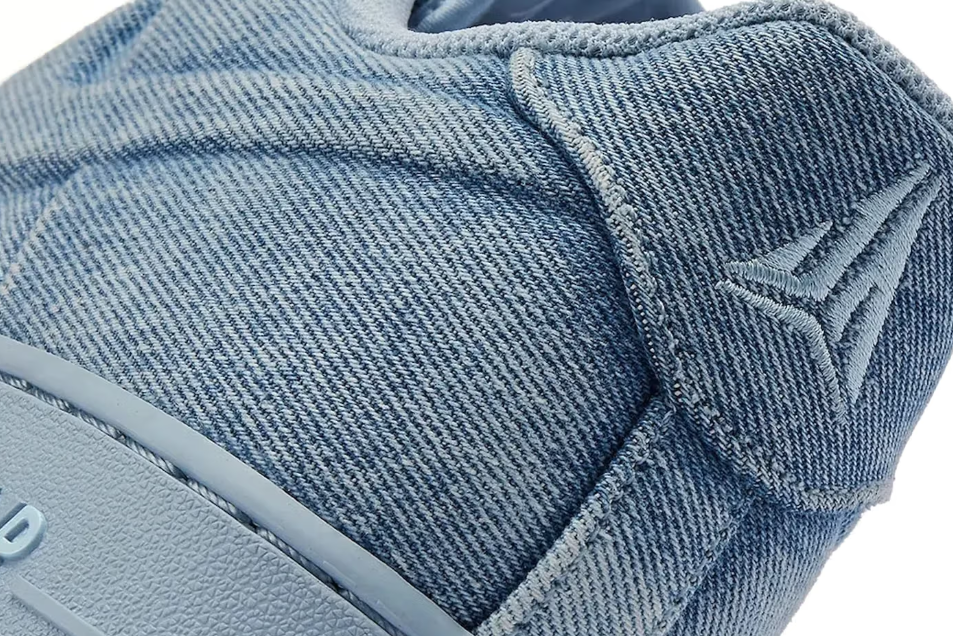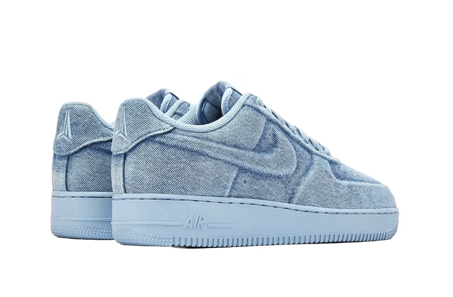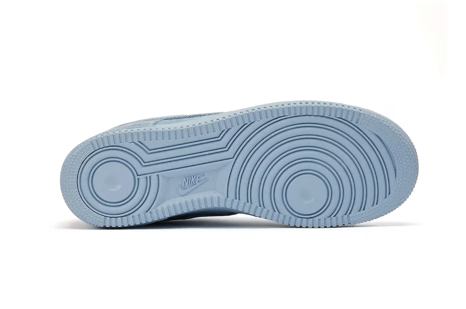 The most striking feature of the Ja Morant “Denim” AF1 is its molded upper. In a departure from traditional sneaker construction, Nike has utilized a stitch-free design that gives the shoe a fluid, minimalist silhouette.