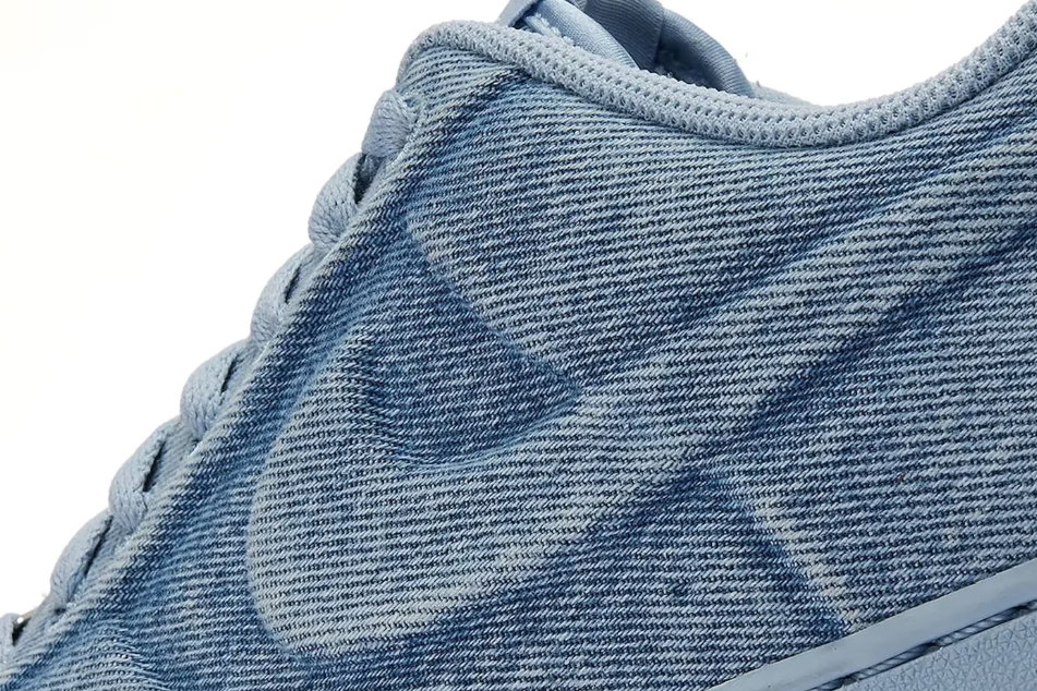 The shoes feature a clean, modern take on a classic silhouette, dressed in a soft light-blue denim upper that gives them a fresh and slightly textured look. The tonal design blends seamlessly from the laces to the swoosh, creating a smooth, monochromatic aesthetic that feels both casual and stylish.