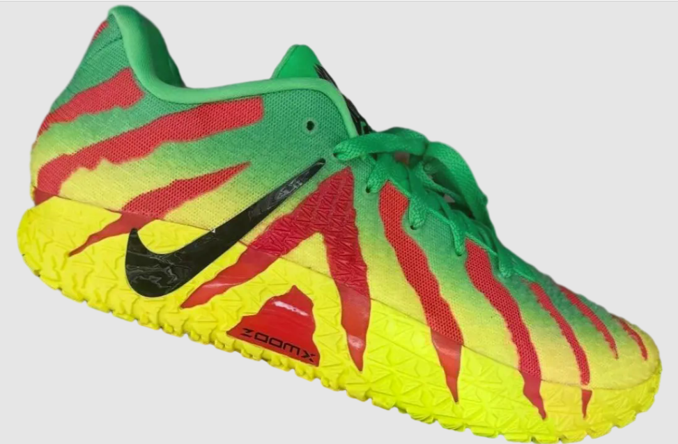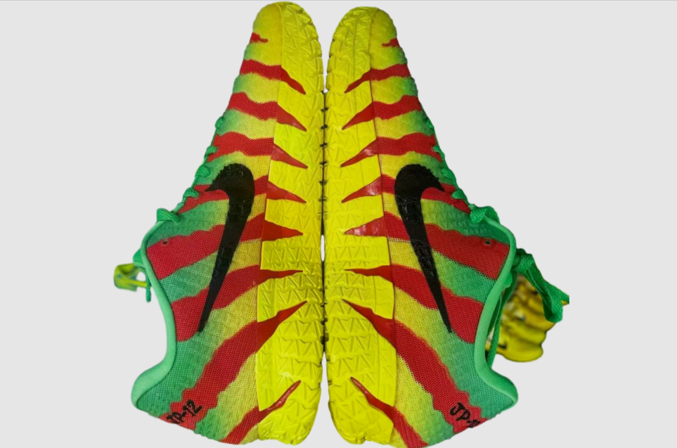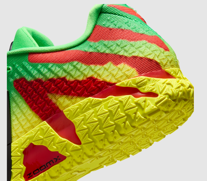 • The Design: The upper features a striking Green Spark-to-Dynamic Yellow gradient, accented by University Red slashes that mimic T-Rex claw marks.
