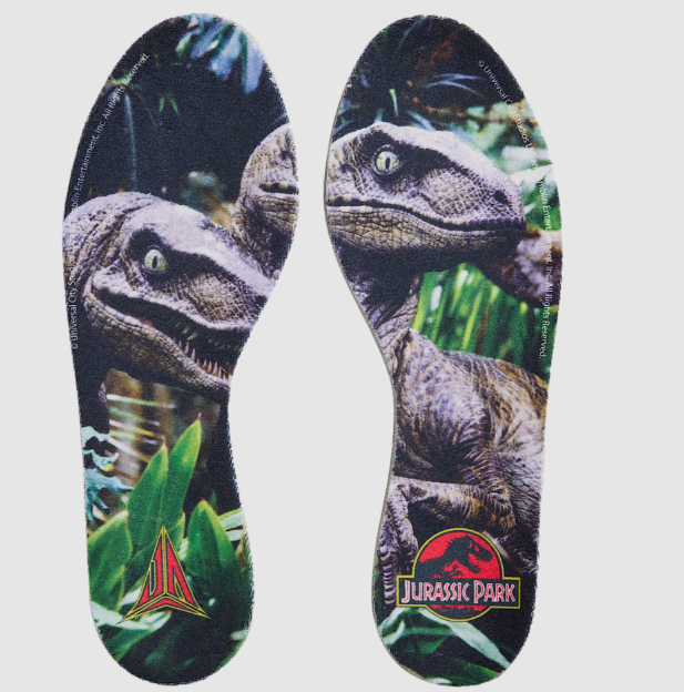 • The Branding: Look for the classic Jurassic Park T-Rex logo on the tongue and custom printed sockliners featuring film imagery.
