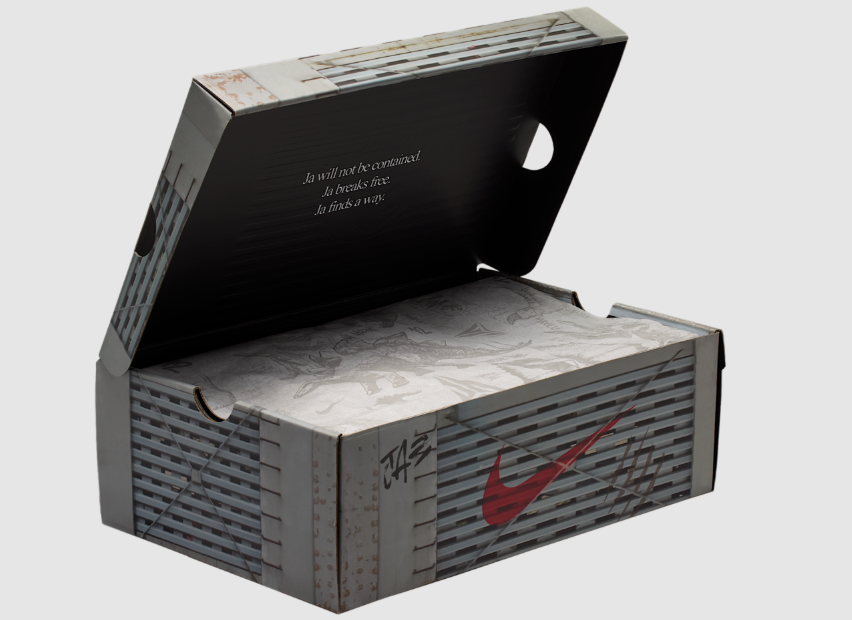 Each pair arrives in a co-branded “Ja-Rassic Park” shoe box and includes a collectible keychain featuring Ja’s logo encased in “amber” resin.